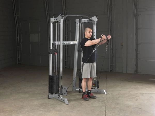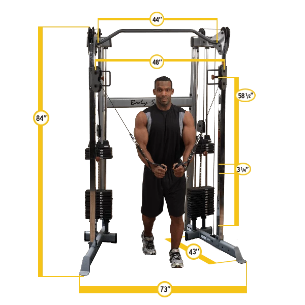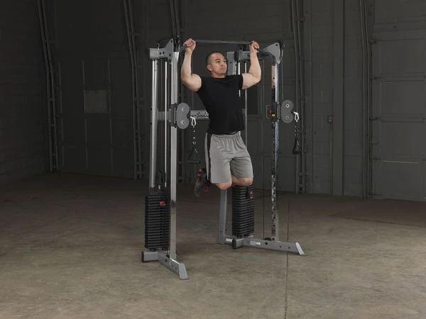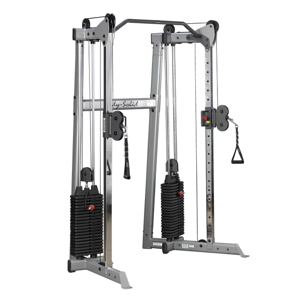 From cable crossovers and shoulder presses to pull-ups, leg kickbacks and everything in between, make a motion to improve your core, build your strength and increase your endurance with the Body Solid Compact Functional Trainer.