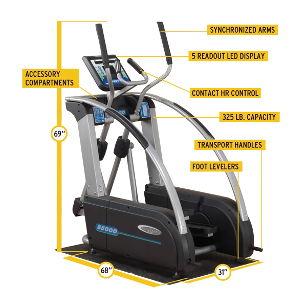 Get pumped for a smooth, dual-action workout with the Body-Solid Endurance E5000 Center Drive Elliptical Trainer.