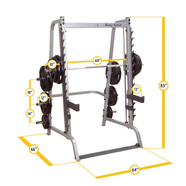 - Precise 7° angle Smith Machine combined with 7° angle freeweight barbell workout center designed for natural upper and lower body exercise movements