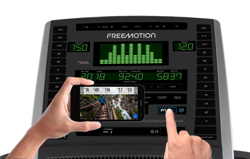 Users sync their smart device to the machine to create an interactive workout experience. Users can choose from over 16,000+ workouts filmed on-location throughout the world or in a studio setting and the iFit® Sync will create a hands-off solution where the machine’s incline, decline and speed is controlled by the on-screen workout and iFit® trainer.