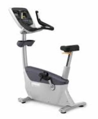 HANDLEBARS: A new over-molded handlebar design offers the user three comfortable riding positions-upright, cruising, and road. In the road position, the ergonomic-shaped handlebars position the wrists in a natural, neutral position. The wide width of the handlebars provide stability and comfort along the entire forearm. The overall width of the handlebars is similar to indoor cycling bikes, which is narrower than most stationary bikes. This places the user in better ergonomic position with the forearms more directly under the shoulders. In the cruising position, the wide handlebar is more comfortable on the user’s hands. Touch heart rate is integrated in the upright and road-race positions. - BIOMECHANICS:To achieve proper pedaling biomechanics, the seat post and seat post offset from the crank is key to aide in efficient pedaling and reduced shear force on the knee. The seat post angle is 74 degrees with a 5 inch (13 cm) offset from the crank axle. This places the forward knee directly over the ball of the foot (or pedal spindle) when the pedals are in a horizontal position.