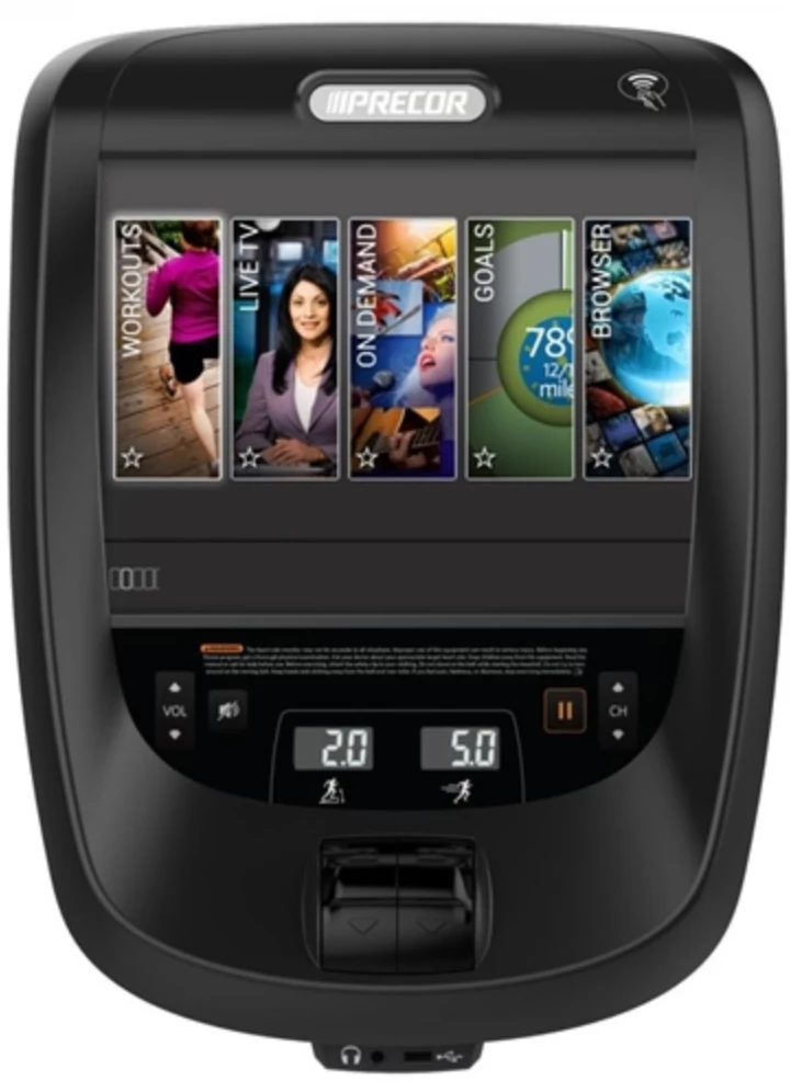 - Electronic Readouts: Total Distance, Distance Remaining, Target Distance, Total Calories Burned, Calories/Min, Calories/Hr, Mets, Watts, Target, Time Elapsed, Time Remaining, Time in Zone, Segment, RPM, Heart Rate, Average Heart Rate, Max Heart Rate, Target Heart Rate
