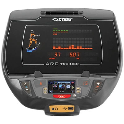 Perfect for fitness fans of any level, the 770AT Arc Trainer from Cybex has a user-friendly touch display and a long list of settings for workout customization. This is a high-end commercial upgrade from the 600 Series that offers a wider range of options for strength, power, and weight loss while burning more calories than most other cross trainers or elliptical machines.