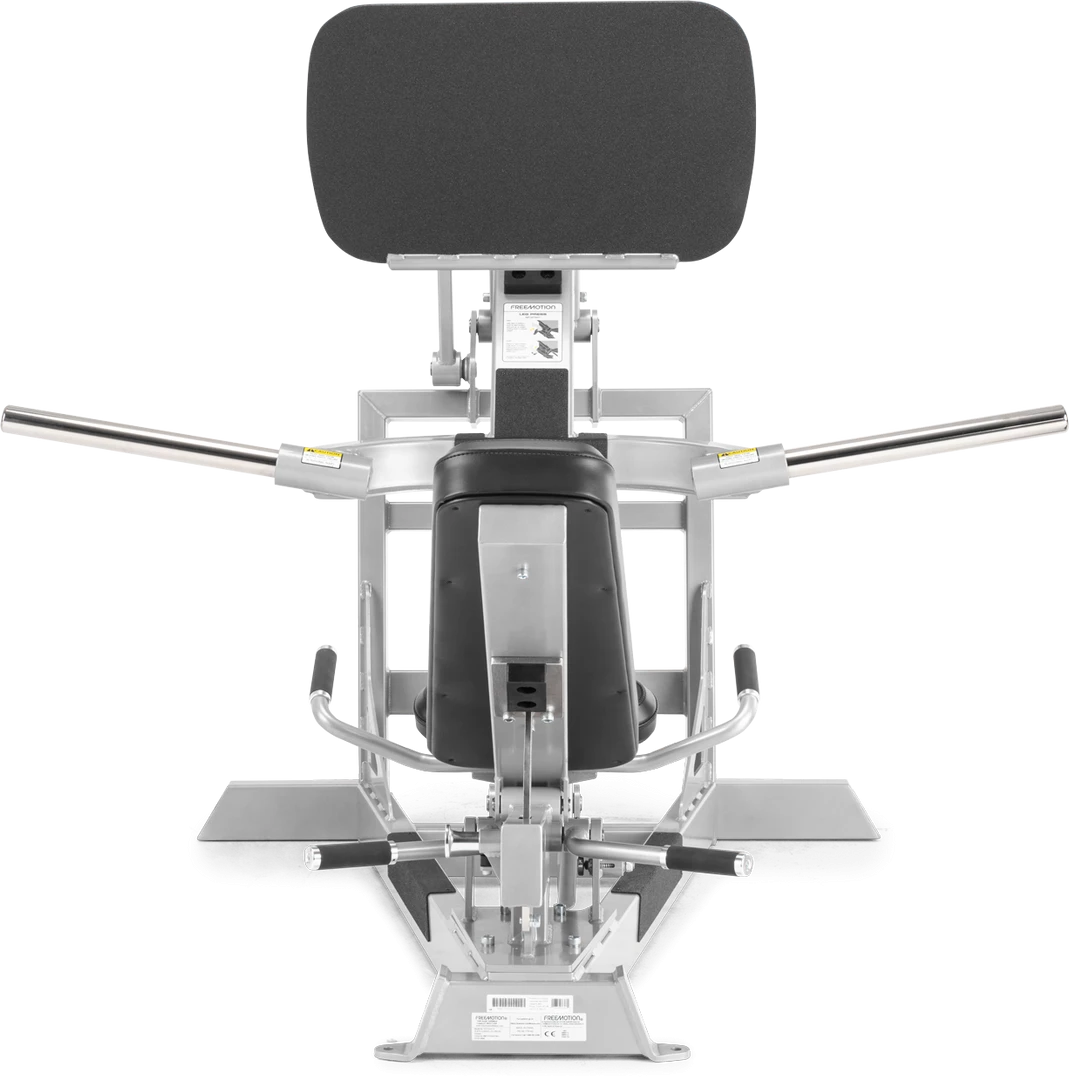 This heavy-duty piece of equipment has a starting resistance of 90 lbs (40.8 kg) and a maximum load weight of 900 lbs (408 kg). The four-bar linkage on the EPIC Plate Loaded Leg Press allows the lower body to move in a more natural pattern and helps reduce stress on the knees. Tough grip Line-X® coating ensures stable foot placement while a sophisticated weight-locking lever ensures safe and easy use. Each load bar is positioned for easy entry and exit and pre-drilled holes can be bolted to the floor for added stability.
