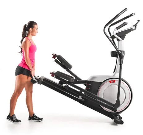 Moving this elliptical out of the way is fast and easy with the front-mounted wheels.