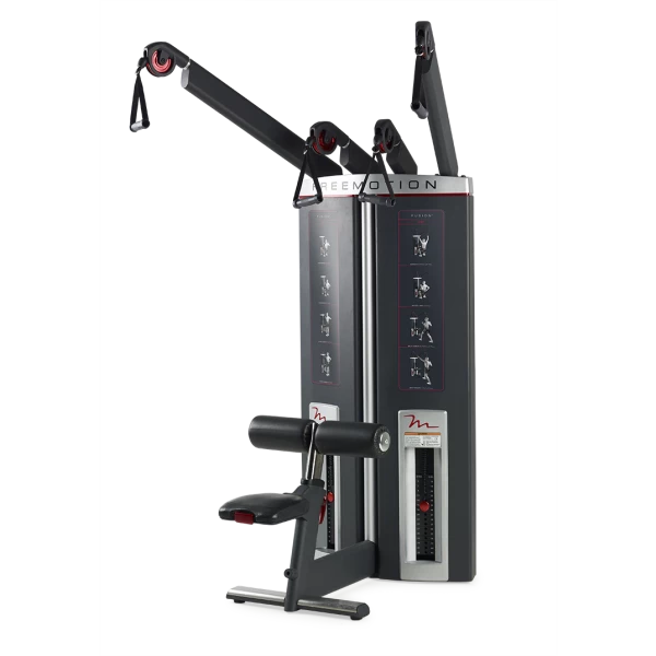 The Genesis DS Lat Pull-High Row engages the arms, shoulders, back and stabilizer muscles to improve overall core strength and balance. An adjustable thigh pad comfortably secures legs throughout the workout while the pivoting, padded seat pad can be quickly folded away for standing workout positions.