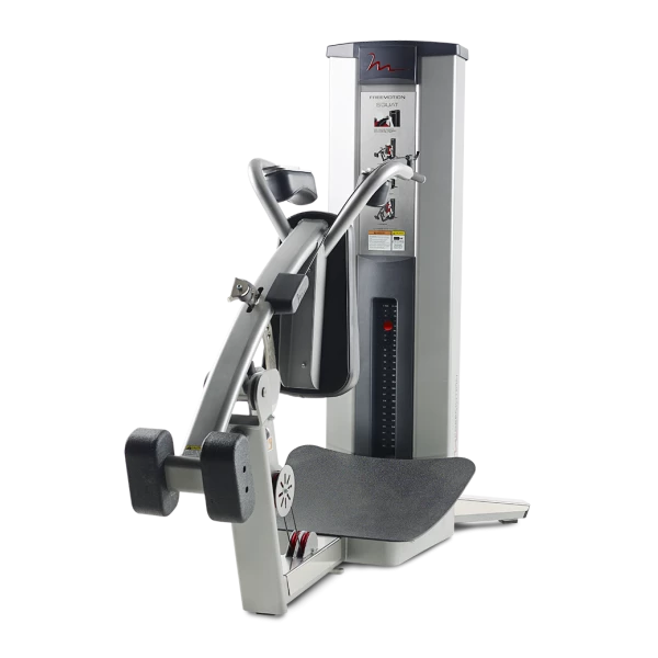 The 70 lbs (31 kg) counter weight of the Genesis Squat is just one of the advantages of this machine. Designed by Freemotion trainers, the rugged, curved platform alleviates stress and pressure on the ankle, while the ‘over the shoulder’ pad is extra plush. The machine naturally puts the member in the perfect squat position and weight selection is easy: squat deep and the machine will pick up the ideal weight. Put one leg behind and now you’ve got a calorie-burning weighted lunge.