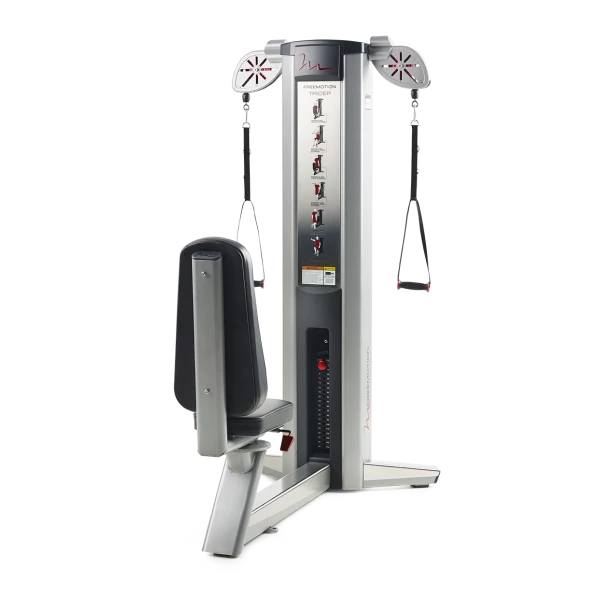 Smart trainers know that posture is everything. The Genesis Tricep machine guides users towards ideal posture with an upright seat that primes an open chest movement. Easily select the weight and Freemotion cable delivers smooth, consistent weight that builds secondary and primary tricep muscles. Stand up to hit the tricep from all angles and pull in a core workout to maximize gym time.