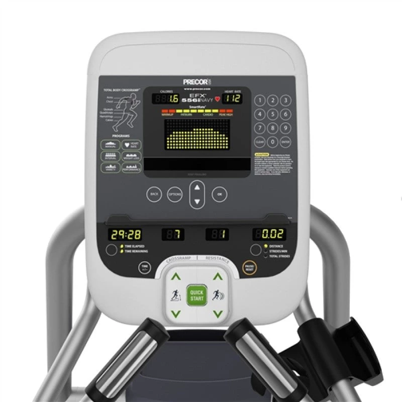The Precor 556i has an experience series display, using the most advanced technology in the fitness industry, that provides users with more programming options than ever before. The console displays comprehensive statistical analysis and allows for users to challenge themselves through exciting workout courses.