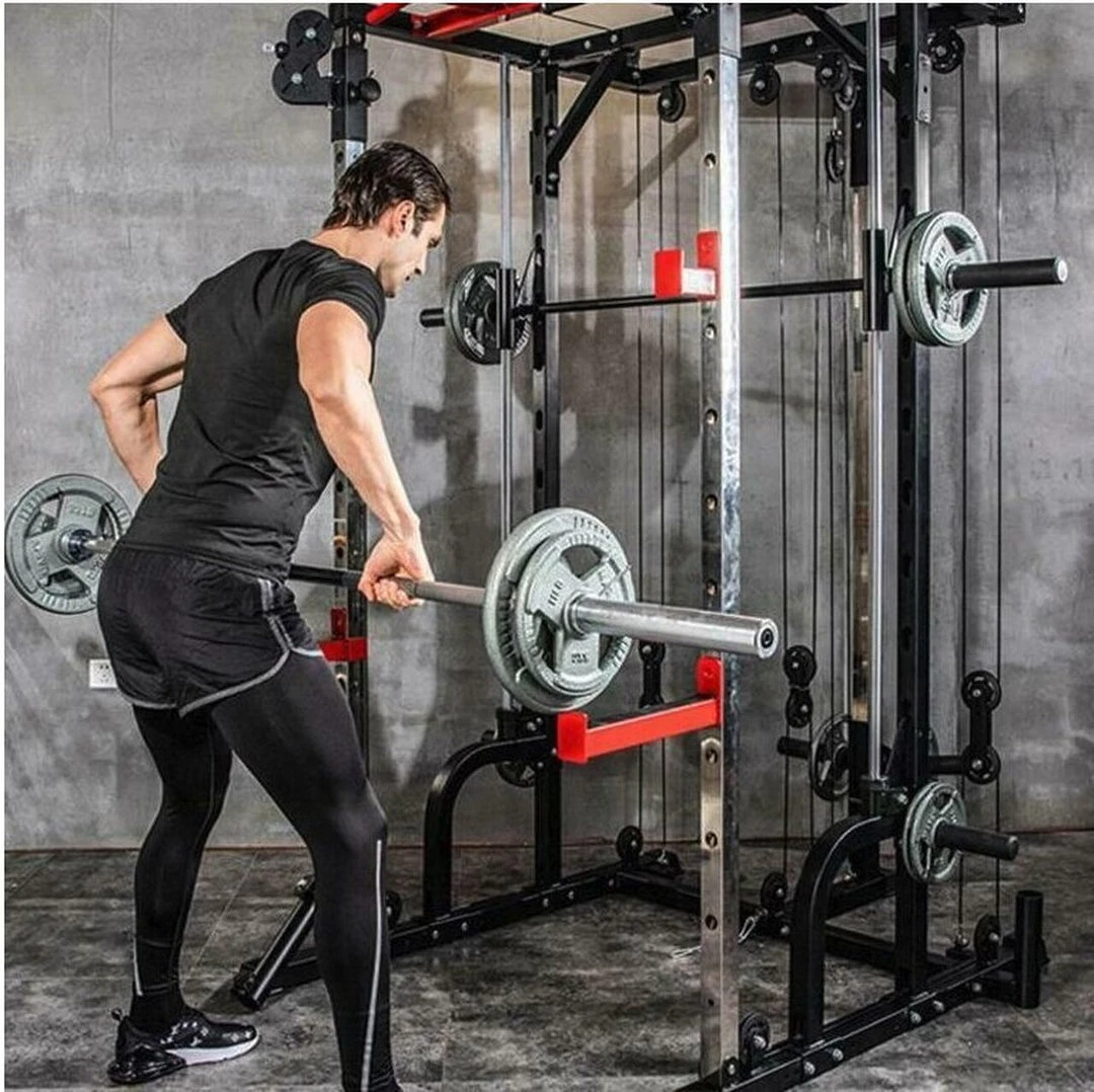 - Linear bearing commercial smith machine with diamond cut machine knurled steel barbell 70.8″ residential grade smith machine bar that can also fit weights with 1 ” holes