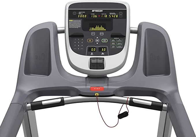 The 833 delivers a smooth and responsive running performance with the added benefit of Integrated Footplant Technology (IFT) and Ground Effects Impact Control (GFX). The 833 is built with exceptional durability, comfort and ease-of-use to meet all exercise goals. Created to complement the entire Experience Series line, the P30 console of the 833 features easy-to-use motion controls and uses a LED-based console that focuses on the essential fitness stats that keep users moving. The easy to use handgrip sensors and telemetry monitor heart rate during workouts, helping users stay in an aerobic workout zone so they can optimize fat burn and improve cardio fitness. Precor’s patented belt system adjusts belt velocity 1000 times per second to match natural changes in foot speed, producing a smooth, rhythmic stride and reducing the jarring impact that can stress joints and cause injuries. Precor’s Impact control systen reduces fatigue and helps users maintain even speed; it combines ideal cushioning where feet land and vital stability where they push off.